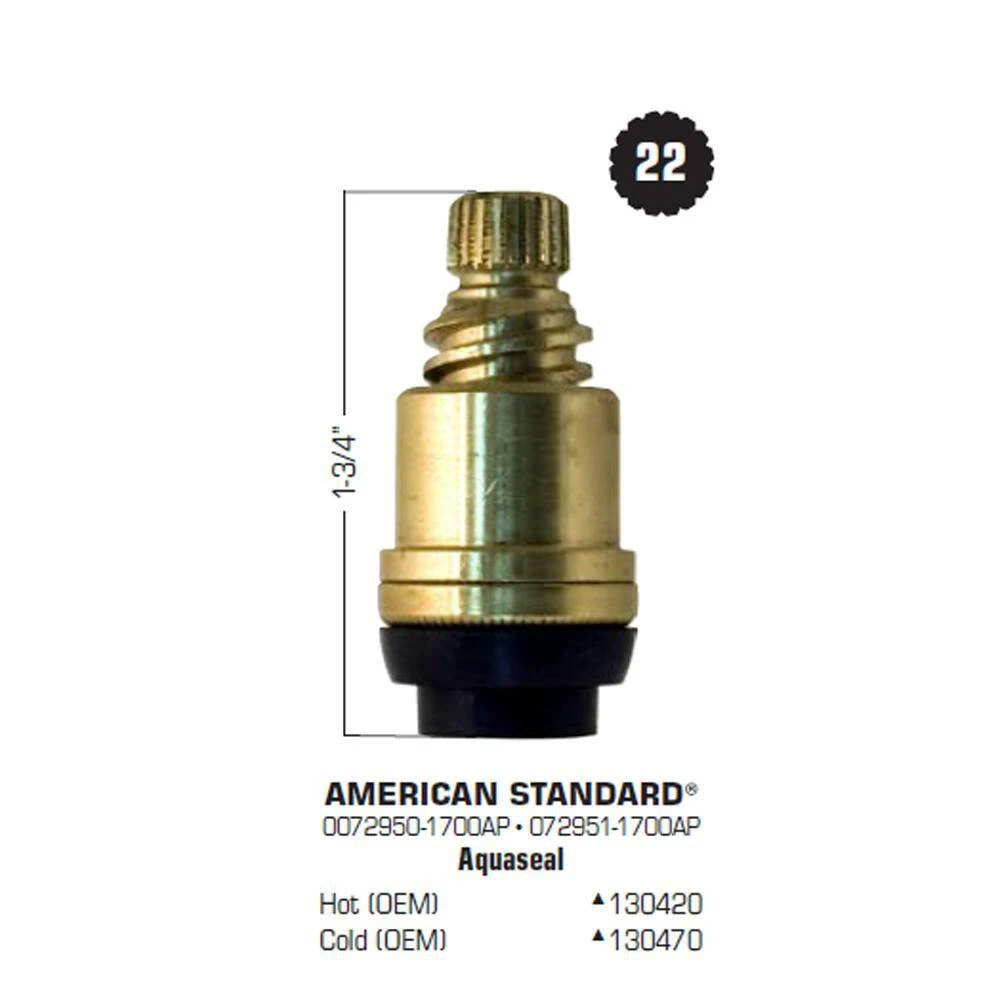 The American Standard AquaSeal replacement stem features durable brass construction. Repairing a leaky faucet is an easy and inexpensive alternative to replacing the entire faucet especially with this OEM (original equipment manufacturer) 072951-1700AP left hand (cold) stem. Be sure to check your repair part information to confirm compatibility.
