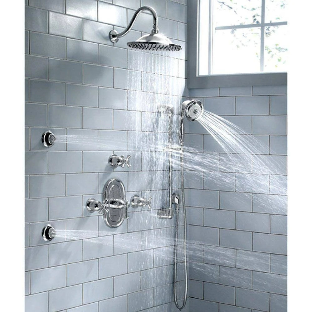 - Extendable shower arm with shepherd’s crook for wall mount application
