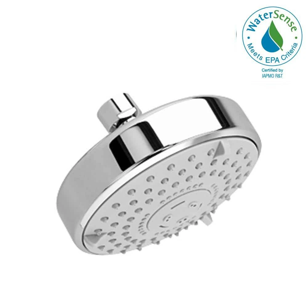 Rain and relaxation, on demand. This 3-function showerhead provides relaxation inspired by nature while using 30% less water. Its styling complements the look of any bathroom. Select a Gentle Rain, Hard Rain or Massage spray. The easy-clean spray nozzles won’t clog so you’ll have one less thing to worry about.