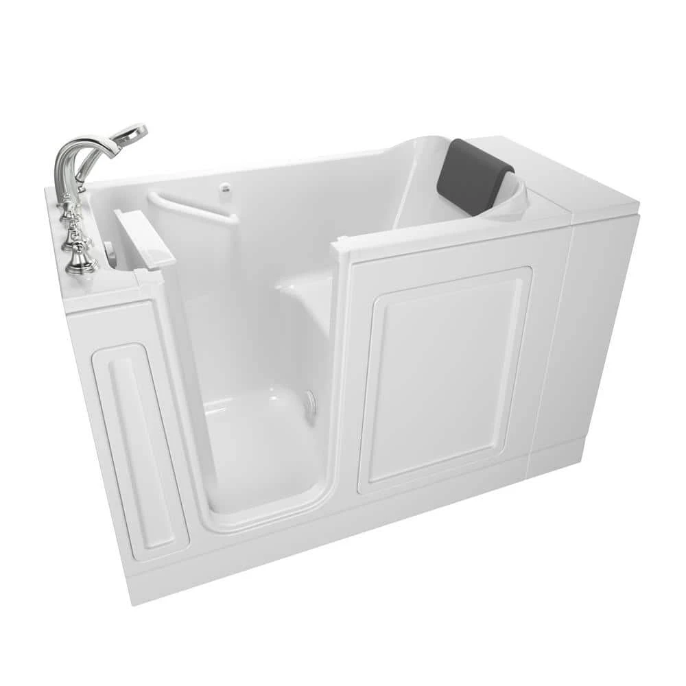 The American Standard 28 in. x 48 in. acrylic walk-in bath provides a similar bathing experience to larger models but fits in smaller spaces and uses less water. The included tub extender allows this tub to retrofit in the same space as a standard bathtub. The full sized, V-shaped door with a low door threshold allows ease of entry and exit. Fully equipped, the 119 premium series offers all the latest in safety and comfort features with the most advanced therapeutic options therapeutic options and backed by a lifetime warranty on the door seal, a 15-year warranty on the tub shell and a 10-year warranty on all other components. Our ergonomically designed lever handle was created to be easy to use for those with partial grip or suffering with arthritis.