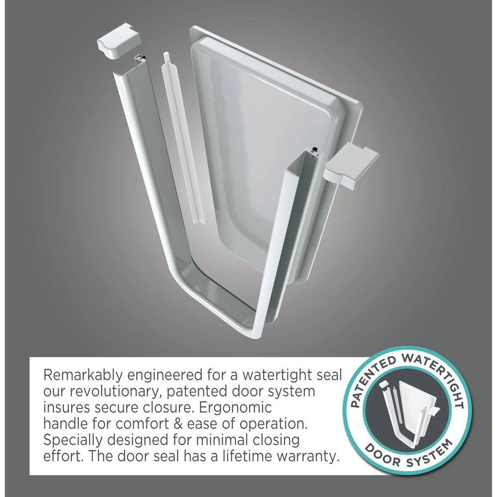 - Equipped with the quick drain system once activated it rapidly pumps the water out from within the tub, eliminating the long wait to safely open the door and exit the tub