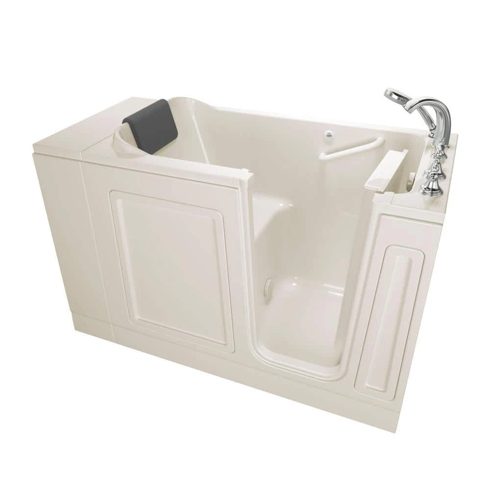 The American Standard 28 in. x 48 in. acrylic walk-in bath provides a similar bathing experience to larger models but fits in smaller spaces and uses less water. The included tub extender allows this tub to retrofit in the same space as a standard bathtub. The full sized, V-shaped door with a low door threshold allows ease of entry and exit. Fully equipped, the 119 premium series offers all the latest in safety and comfort features with the most advanced therapeutic options therapeutic options and backed by a lifetime warranty on the door seal, a 15-year warranty on the tub shell and a 10-year warranty on all other components. Our ergonomically designed lever handle was created to be easy to use for those with partial grip or suffering with arthritis.