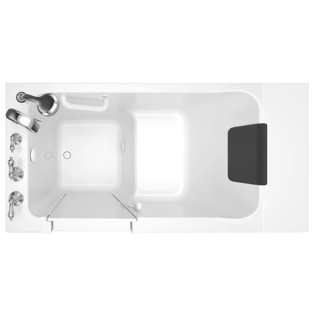 The American Standard 30 in. x 51 in. Acrylic walk-in bath provides a similar bathing experience to larger models but fits in smaller spaces and uses less water. The included tub extender allows this tub to retrofit in the same space as a standard bathtub. The full sized, V-shaped door with a low door threshold allows ease of entry and exit. Fully equipped, the 119 Premium Series offers all the latest in safety and comfort features with the most advanced therapeutic options therapeutic options and backed by a lifetime warranty on the door seal, a 15-year warranty on the tub shell and a 10-year warranty on all other components. Our ergonomically designed lever handle was created to be easy to use for those with partial grip or suffering with arthritis.