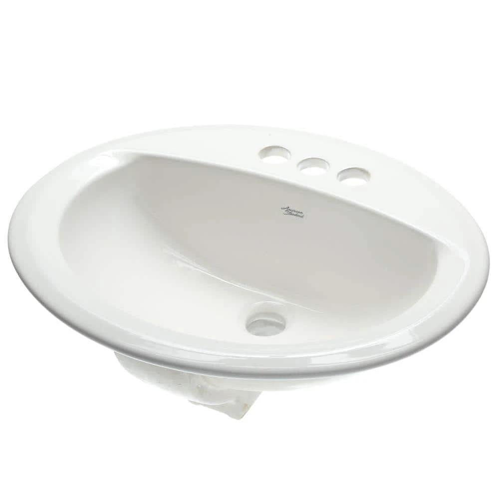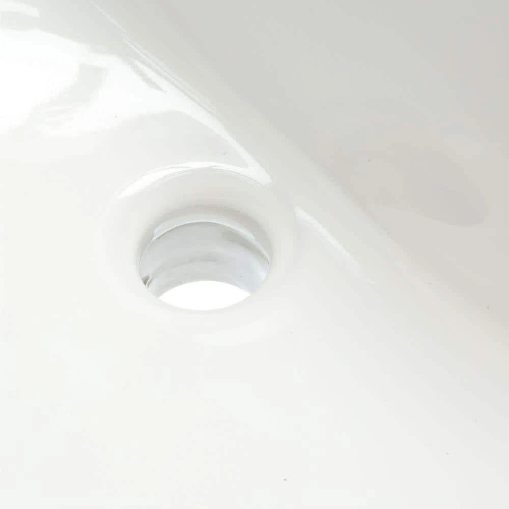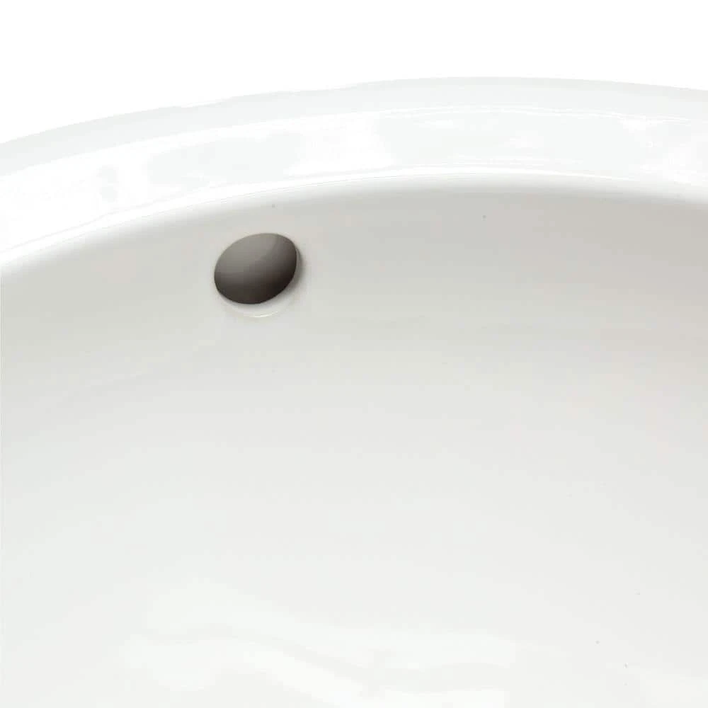 Distinctive Aqualyn oval white bathroom sink is surrounded with tapered edging that transitions smoothly from bowl to counter. This self-rimming drop-in sink is easy to install just by cutting a hole in your countertop, made easier with the included template to guide your saw. The clean white finish meshes with any bathroom decor and blends with any countertop surface, whether it’s granite, laminate, tile, wood or marble.