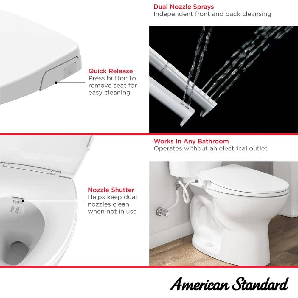 AquaWash SpaLet seat features a modern design with a slim 2-3/8 in. telescoping seat that accompanies any decor. This seat features a water-pressure bidet seat with adjustable spray patterns and detachable nozzles; no electrical power is required. This seat also features a one-summary push lift-off for easier cleaning; slow close hinges to prevent slamming of the seat and top mount installation for easier install. Fits most conventional toilets.