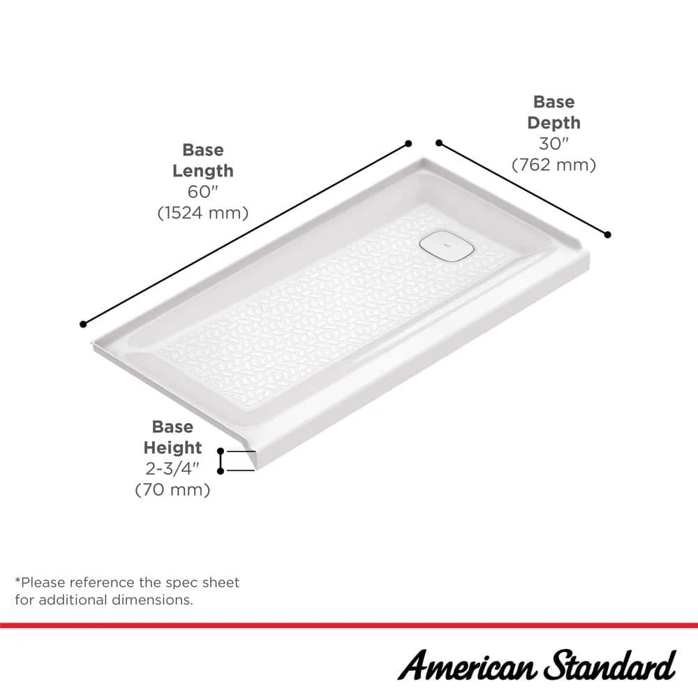 The Aspirations Shower Base from American Standard coordinates perfectly with the Aspirations bath collection. Designed with safety in mind, the shower base features a low threshold for ease when entering and exiting, in addition to a textured floor to help reduce the chance of slipping. Stain-resistant surface inhibits the growth of mildew for easy cleaning.