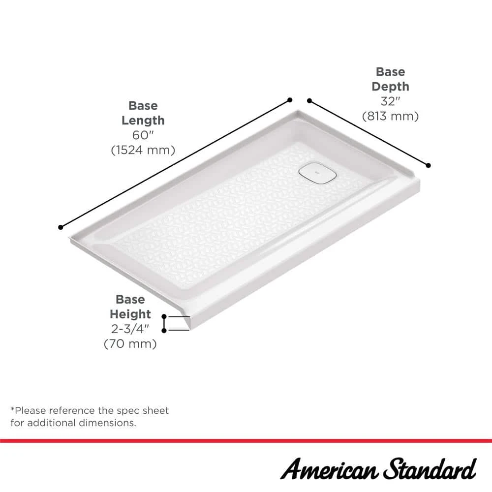 The Aspirations Shower Base from American Standard coordinates perfectly with the Aspirations bath collection. Designed with safety in mind, the shower base features a low threshold for ease when entering and exiting, in addition to a textured floor to help reduce the chance of slipping. Stain-resistant surface inhibits the growth of mildew for easy cleaning.