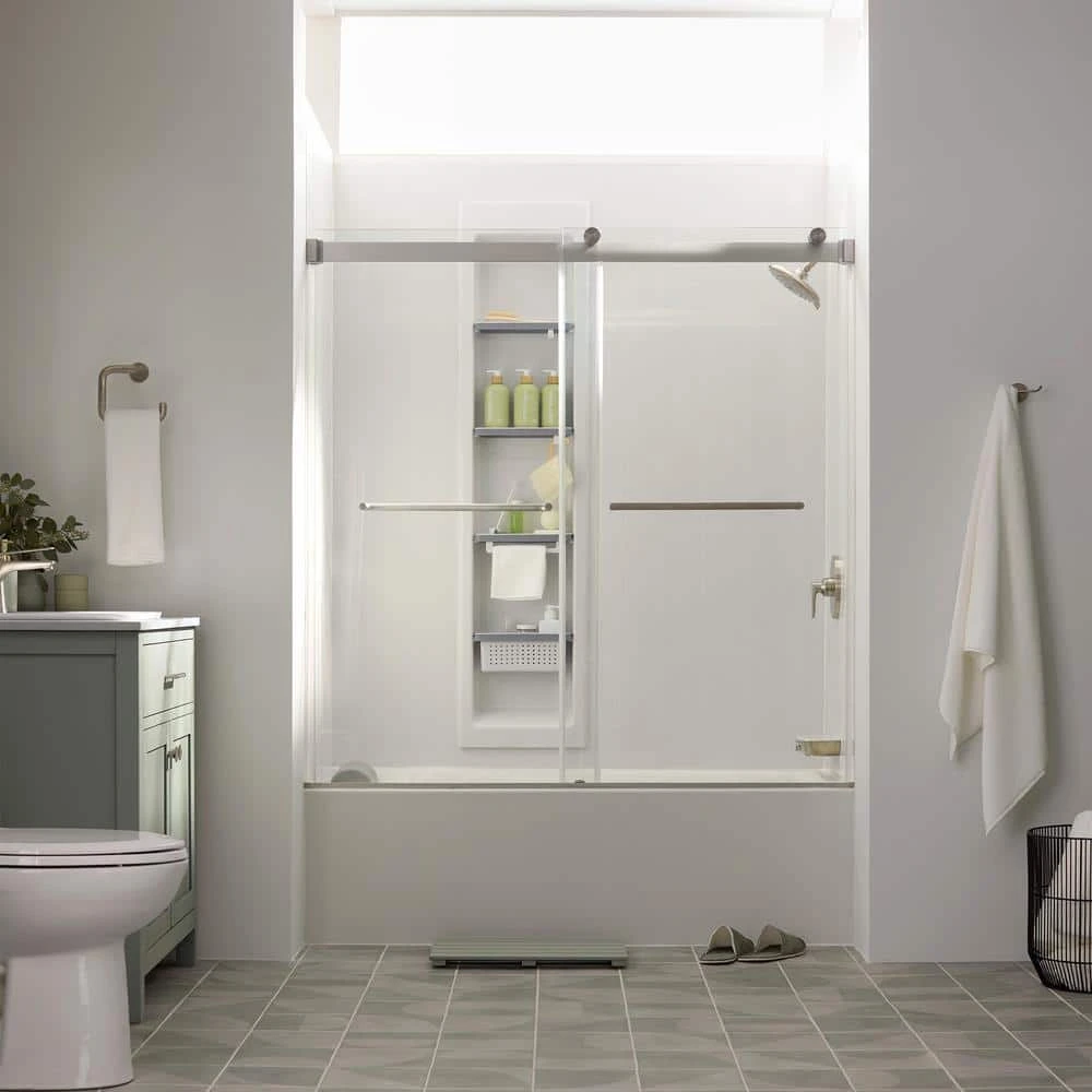The Aspirations Roller-Top Barn-Style Doors from American Standard update your bathroom with contemporary style and functionality. This frameless door features an impact-absorbing design to ensure a safe, quiet close. Made of 5/16-in. thick (8mm) tempered glass, the Aspirations barn-style door elevates the bathroom with a premium look and feel. Available in multiple finishes.