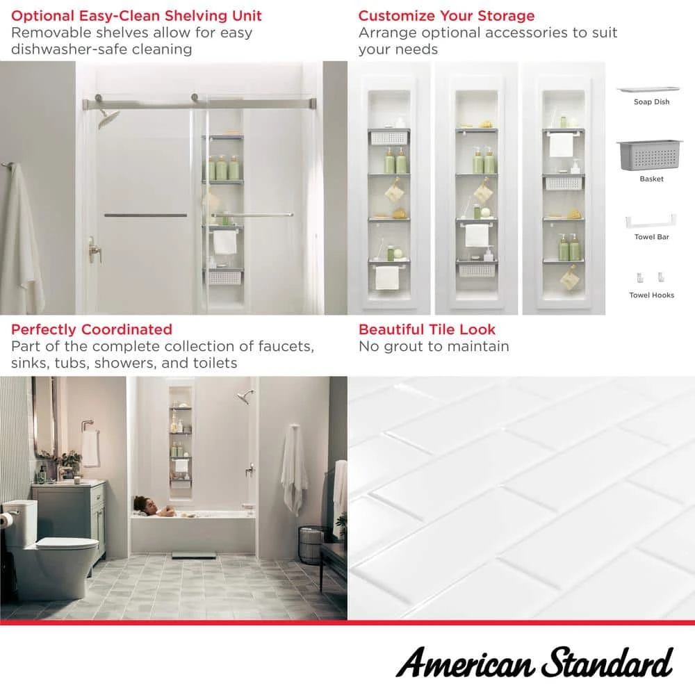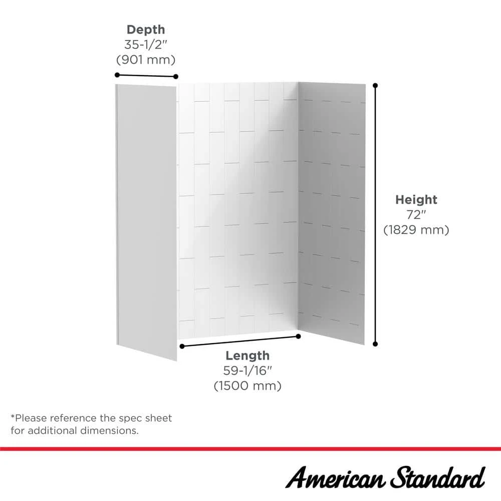 The aspirations glue-up bathtub walls from American standard elevate the bathroom with the crisp, clean look of glossy white tiles. This low-maintenance bathtub wall system eliminates the care and maintenance required of traditional tile grout while inhibiting the growth of mildew for easy cleaning. Premium 72 in. H is designed to reach above the showerhead for a finished look. These contemporary wall panels coordinate perfectly with the aspiration’s bathroom collection.