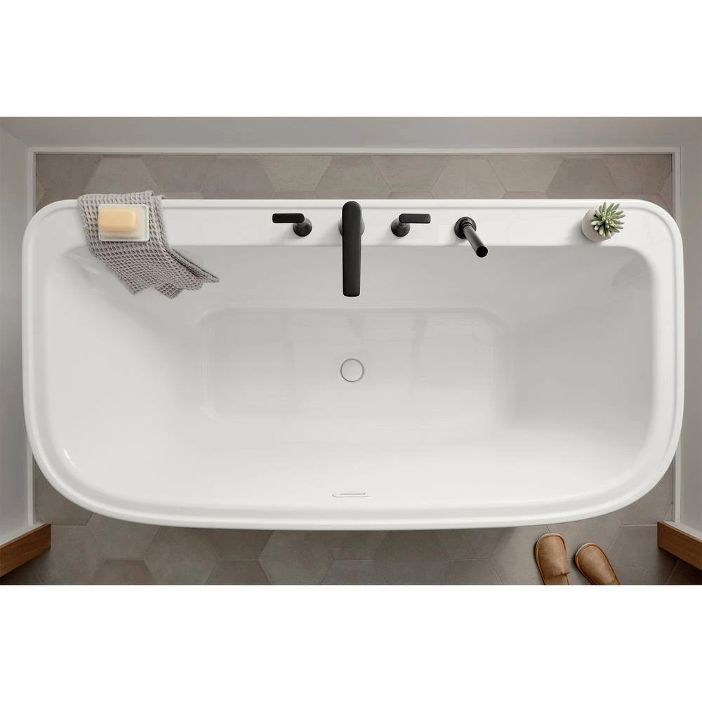 The Aspirations Freestanding Bathtub from American Standard is an elegant, contemporary tub measuring 60-in. x 34-in. to accommodate bathrooms where space may be limited. Offering ample interior room for deep relaxation, this freestanding tub is enhanced with lumbar support for maximized back comfort. Wide 5-in. rear deck accommodates a deck-mounted tub filler, sold separately, in addition to storing bathing essentials. The Aspirations Freestanding Bathtub is the perfect complement to the entire Aspirations collection.