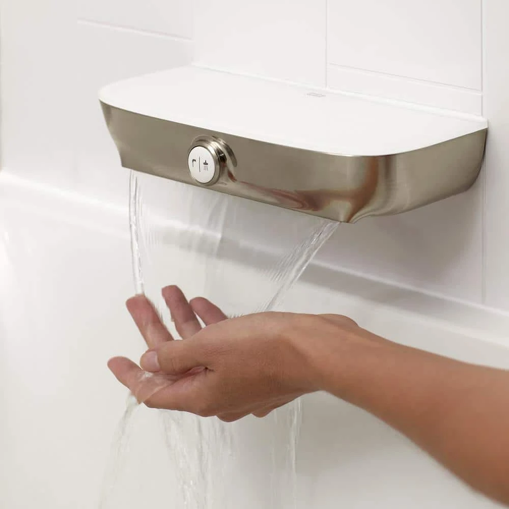 The aspirations waterfall diverter tub spout from American Standard creates a soothing, cascading flow of water and doubles as a shelf to keep bathing essentials handy. The push-summary diverter makes it easy to switch from showering to filling the tub. This contemporary waterfall tub spout is designed to complement the entire aspirations collection.