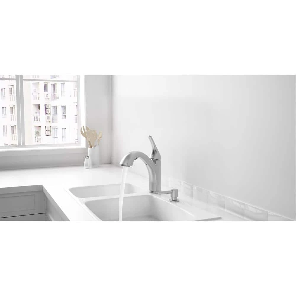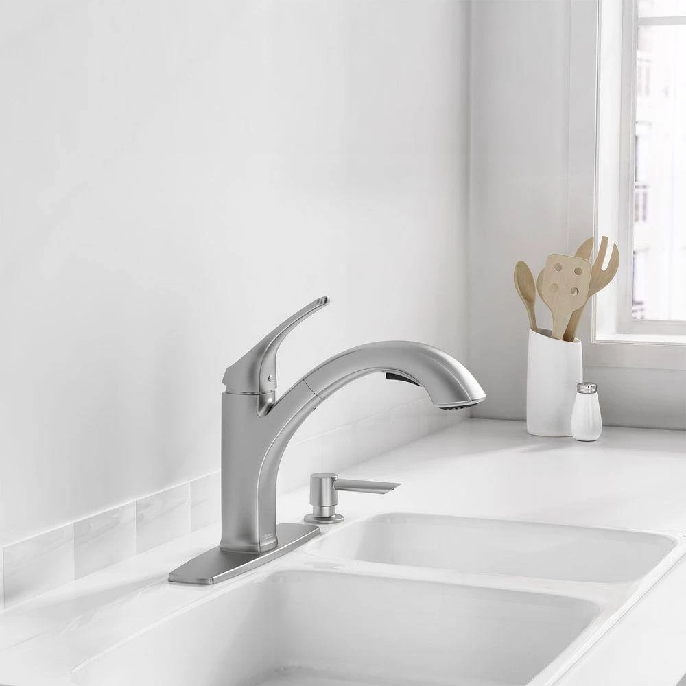 - Pull-out spray head enables you to reach every corner of your sink