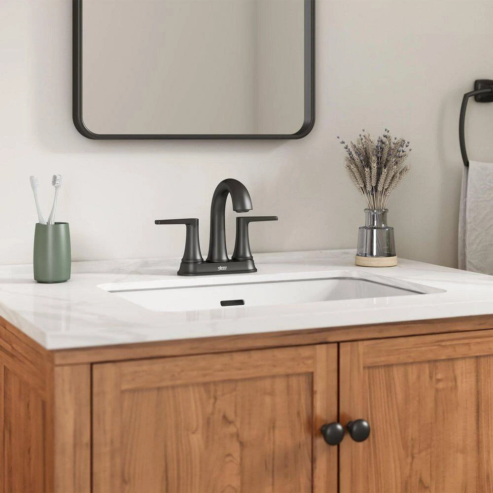- Space-saving faucet: 4 in. centerset is the perfect bathroom faucet for smaller 3-hole bathroom sinks
