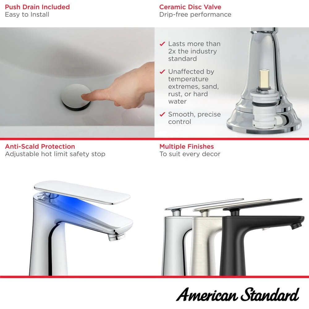 The Becklow Single-Handle Widespread Bathroom Faucet from American Standard is an impressive faucet design with a gently curved spout and metal lever handle that feels sturdy to the grip and moves with smooth precision. This single-hole bathroom faucet is easy to install for a quick update. Perfect for the busiest bathroom, the Becklow single-handle faucet promises drip-free performance, lasting beauty, and reliability in the busiest bathroom.