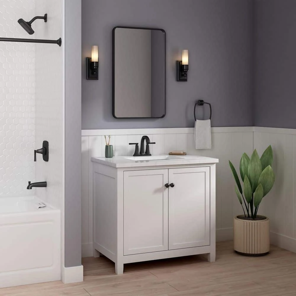 - Space-saving faucet: 4 in. centerset is the perfect bathroom faucet for smaller 3-hole bathroom sinks