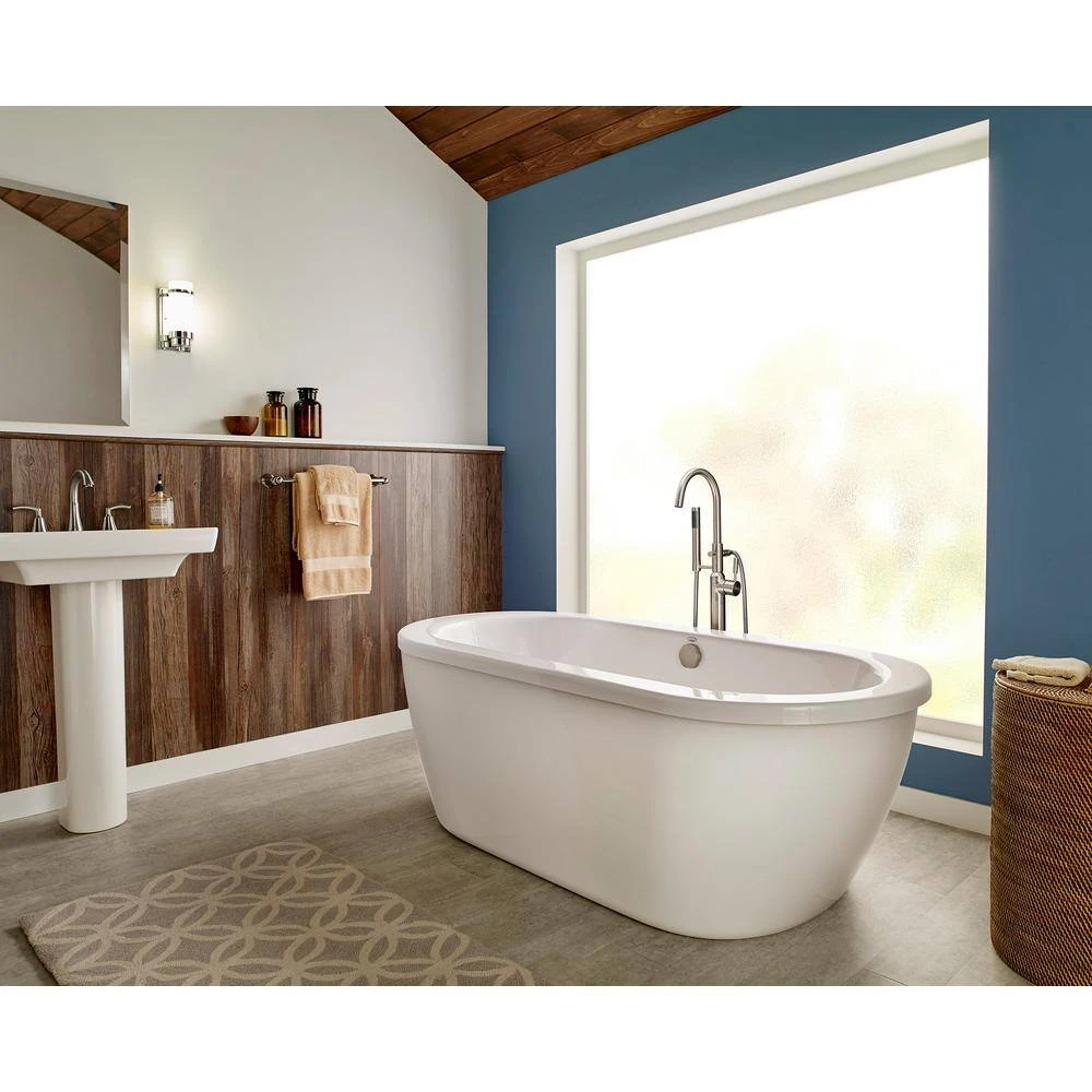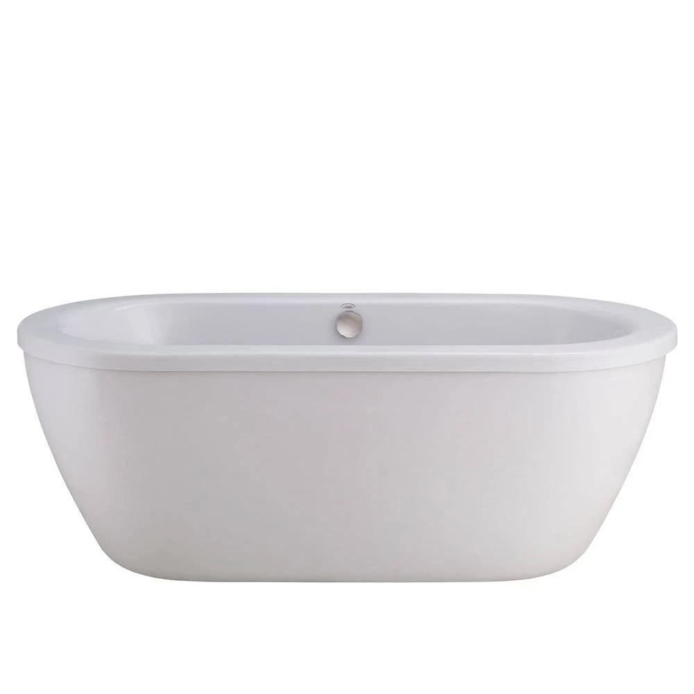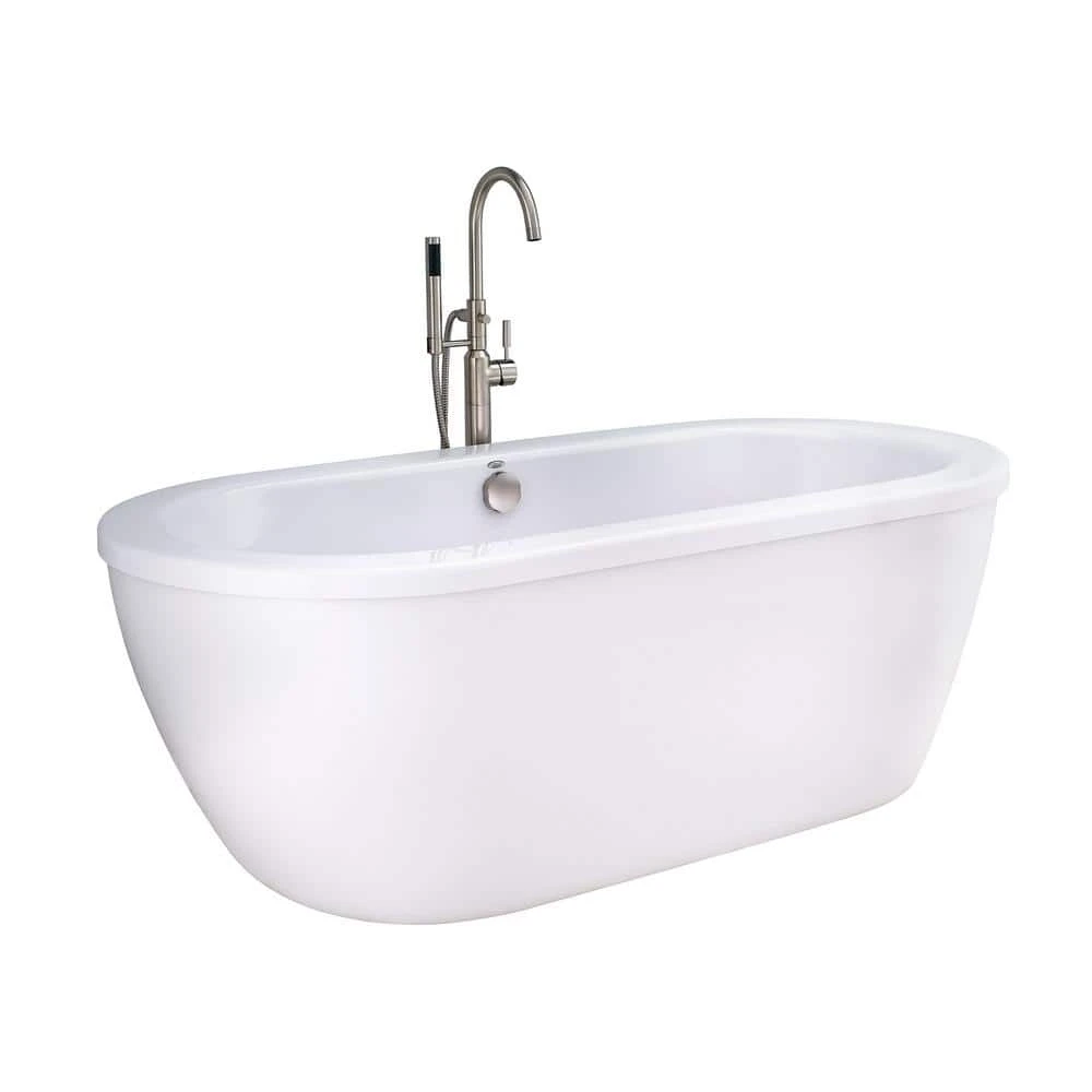 Cadet 66 in. Acrylic Freestanding Soaker Bathtub from American Standard is complemented by a brushed nickel tub filler, hand shower and drain. Sleek and contemporary, Cadet is reminiscent of a Japanese soaking tub with its soft oval shape, rounded edges and extra-deep bathing well. Designed for total immersion, Cadet features a lustrous, high-gloss finish that makes cleaning easy while adding elegance to your bathroom design.