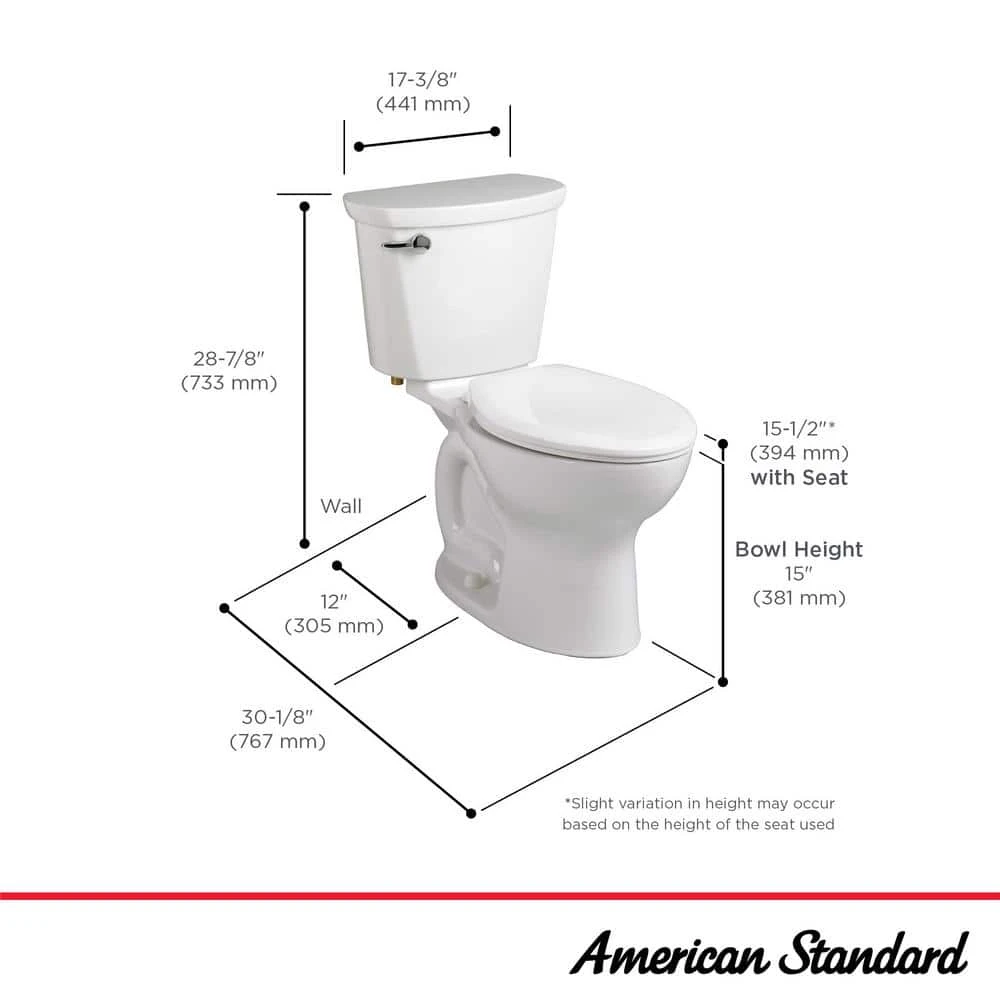 The Cadet Standard-Height Elongated Toilet from American Standard is plumber tested and plumber approved. The Cadet is backed by an industry-leading warranty that includes lifetime on chinaware, 5-years on mechanical parts and 1-year on the seat. Engineered for high-efficiency, low consumption, it uses 1.28 gal. per flush, 20% less water than a regular toilet and is WaterSense certified, your assurance of optimal water savings, quality and performance. The EverClean surface inhibits the growth of stain and odor-causing bacteria, mold and mildew.