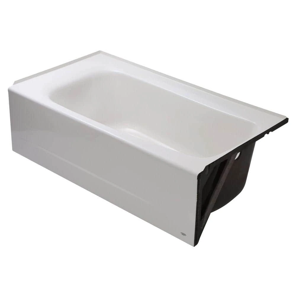 A durable, lightweight and less costly alternative to cast iron, the Cambridge Apron-Front Americast Soaking Bathtub from American Standard invites relaxation. The exclusive Americast technology incorporates a glossy enamel top layer that’s easy to clean, a steel center for strength, and a thick, insulating layer to keep water warmer for a longer, more enjoyable bath. Crafted for bathing comfort and safety, this traditional tub has a beveled headrest, contoured lumbar support and a slip-resistant floor surface.