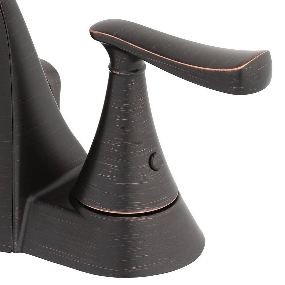 - Graceful mid-arc faucet spout and lever handles