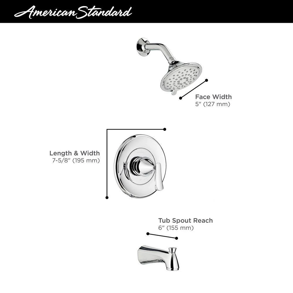 The Chatfield Tub and Shower Trim Kit from American Standard brings clean, transitional styling and showering enjoyment to your bathroom. Three-function showerhead delivers conventional spray, massage spray or a combination of both to satisfy every preference. Equipped with an anti-scald pressure balance valve, the sleek, lever handle allows you to safely fine-tune water with protection from scalding due to unexpected changes in temperature and pressure. Matching tub spout features pull-up diverter. Coordinates perfectly with Chatfield sink faucets for complete bathroom harmony.