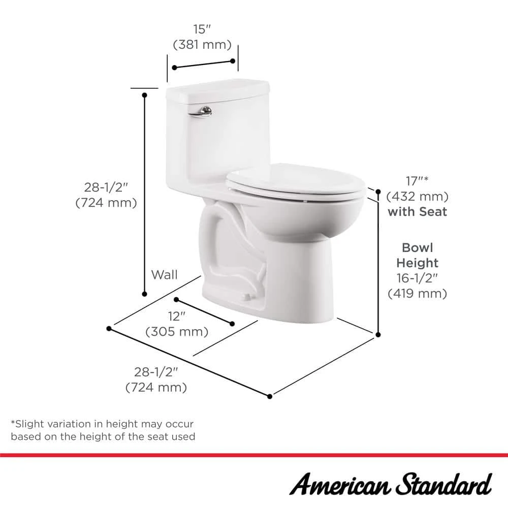 The Compact Cadet 3 One-Piece Chair-Height Elongated Toilet from American Standard fits in the same space as a round-front toilet while providing more comfort. This seamless, one piece toilet offers easy-clean convenience by eliminating the gap between tank and bowl where buildup often hides. The Compact Cadet 3 toilet is a high-efficiency, low-consumption model that uses 20% less water than conventional toilets without sacrificing performance.