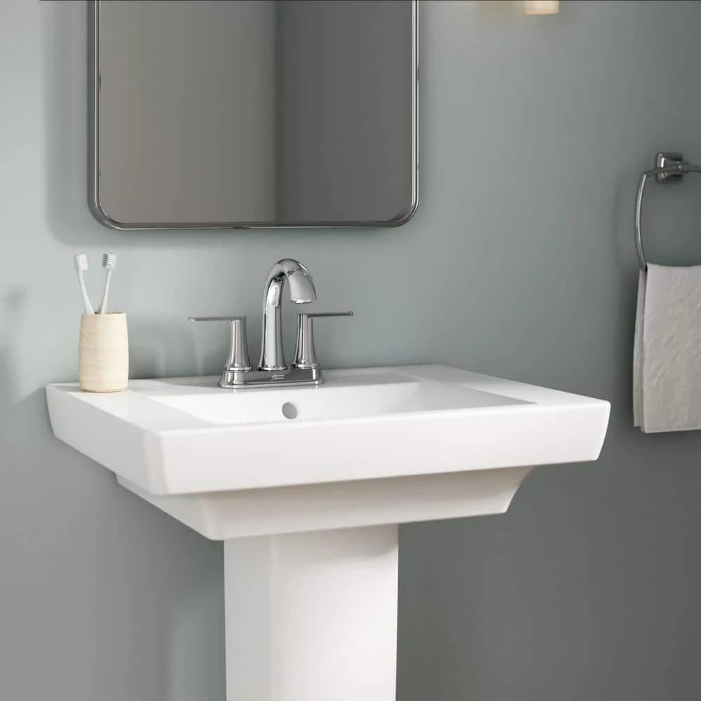 The Corsham 2-Handle Center set Bathroom Faucet from American Standard is a stately design with a gently curved spout and slim lever handles. The Corsham faucet is easy to install for a quick update. It promises drip-free performance, lasting beauty and reliability in the busiest bathroom.