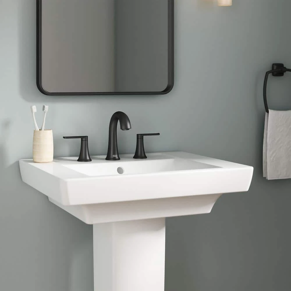 The Corsham 2-Handle Widespread Bathroom Faucet from American Standard is a stately design with a gently curved spout and slim lever handles. The Corsham faucet is easy to install for a quick update that promises drip-free performance, lasting beauty and reliability in the busiest bathroom. Made with durable material.