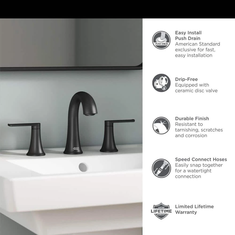 The Corsham 2-Handle Widespread Bathroom Faucet from American Standard is a stately design with a gently curved spout and slim lever handles. The Corsham faucet is easy to install for a quick update that promises drip-free performance, lasting beauty and reliability in the busiest bathroom. Made with durable material.