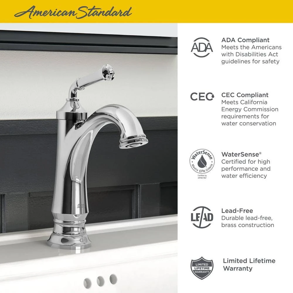 Inspired by the finer points of classic architecture, the Delancey Bath Faucet Collection from American Standard captures the refined elegance of stately columns and sublime details. Enduring both in style and performance, drip-free Delancey faucets are available in beautiful, tarnish- and scratch-resistant finishes. Durable, reliable, quality engineering and construction.