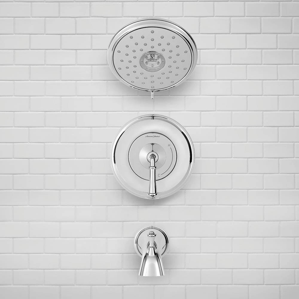 Inspired by the finer points of classic architecture, the Delancey Water-Saving Bath and Shower Trim from American Standard captures the refined elegance of stately columns and sublime details. Its equipped with dependable, double ceramic pressure balance technology for consistent water temperature, anti-scald protection, and smooth, flawless operation, while using 28% less water than standard showerheads without sacrificing performance. Delancey is available in beautiful, tarnish- and scratch-resistant finishes.