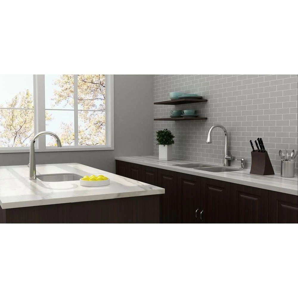 The Edgewater Pull-Down Kitchen Faucet was created with a beautiful high-arc design and features a SelectFlo 4-function spray with pause, allowing you to choose between Stream, Spray, Mist, and Jet options to help you with a multitude of tasks. A Re-Trax retraction system ensures a smooth pull-out, use, and retraction of the spray head. This lead-free faucet includes our ceramic disc valve cartridge technology for a lifetime of drip-free and maintenance-free performance.