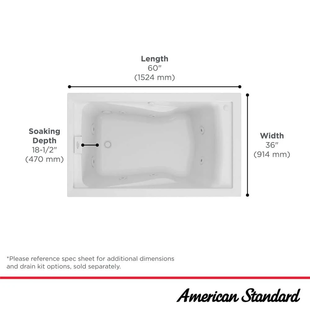 Relax and de-stress in the EverClean 5 ft. Drop-in Whirlpool Bathtub from American Standard. Relieve tired muscles and soothe sore joints in the deepest soak available with 8 strong water jets that can be directed exactly where you need relief the most. Ensuring superior cleanliness, the American Standard EverClean silver-ion additive is molded directly into the circulation piping and jet surface for continual protection from algae, fungus, mold and mildew.