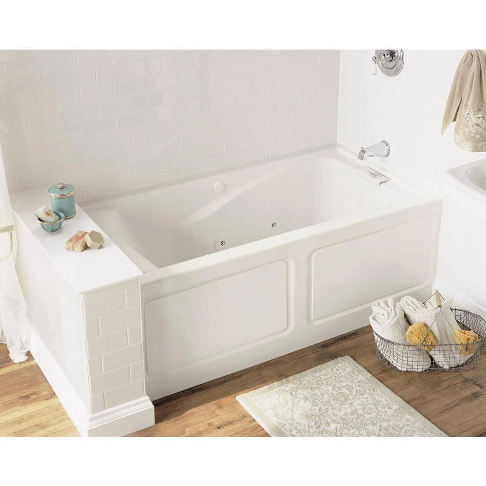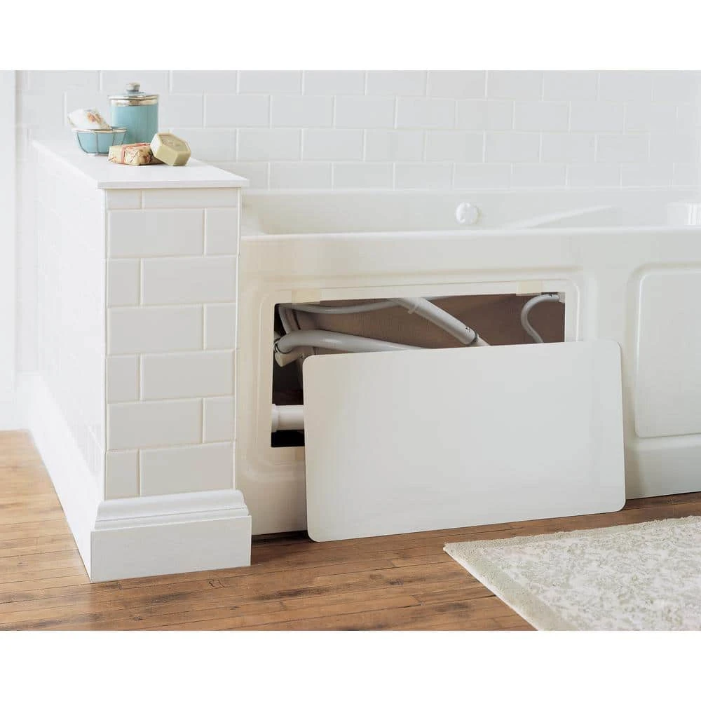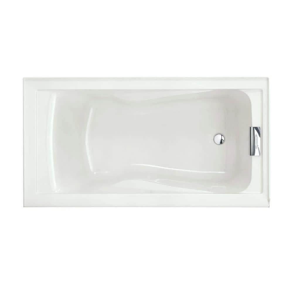 The American Standard Evolution 5 ft. Acrylic Bathtub in White is reinforced with fiberglass for strength and durability and built with a convenient apron with a removable access panel. The generous 17-1/2 in. water depth to overflow provides a deep soak as you relax in comfort with the dual molded-in armrests at your sides.