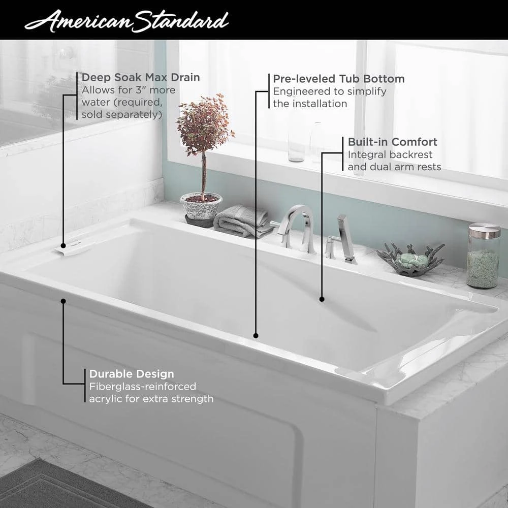 Designed to soothe at the end of the day, the Evolution Deep Soaking Tub from American Standard is a luxurious 18-1/2 in. deep bathing pool that allows for total immersion and comfort. Featuring dual molded-in armrests, lumbar support and a safe, slip-resistant floor surface, Evolution transforms everyday bathing into a relaxing spa experience.
