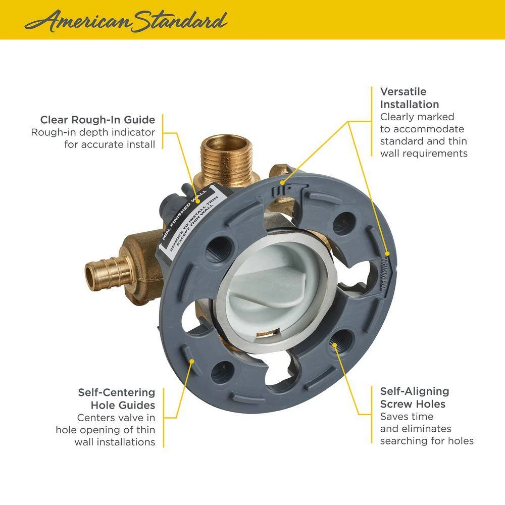 American Standard Flash Shower Rough-In Valve With PEX Inlets/Universal Outlets For Crimp Ring System