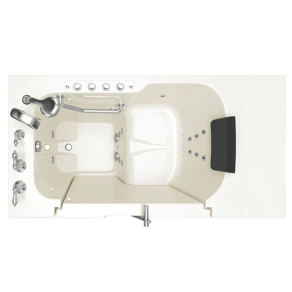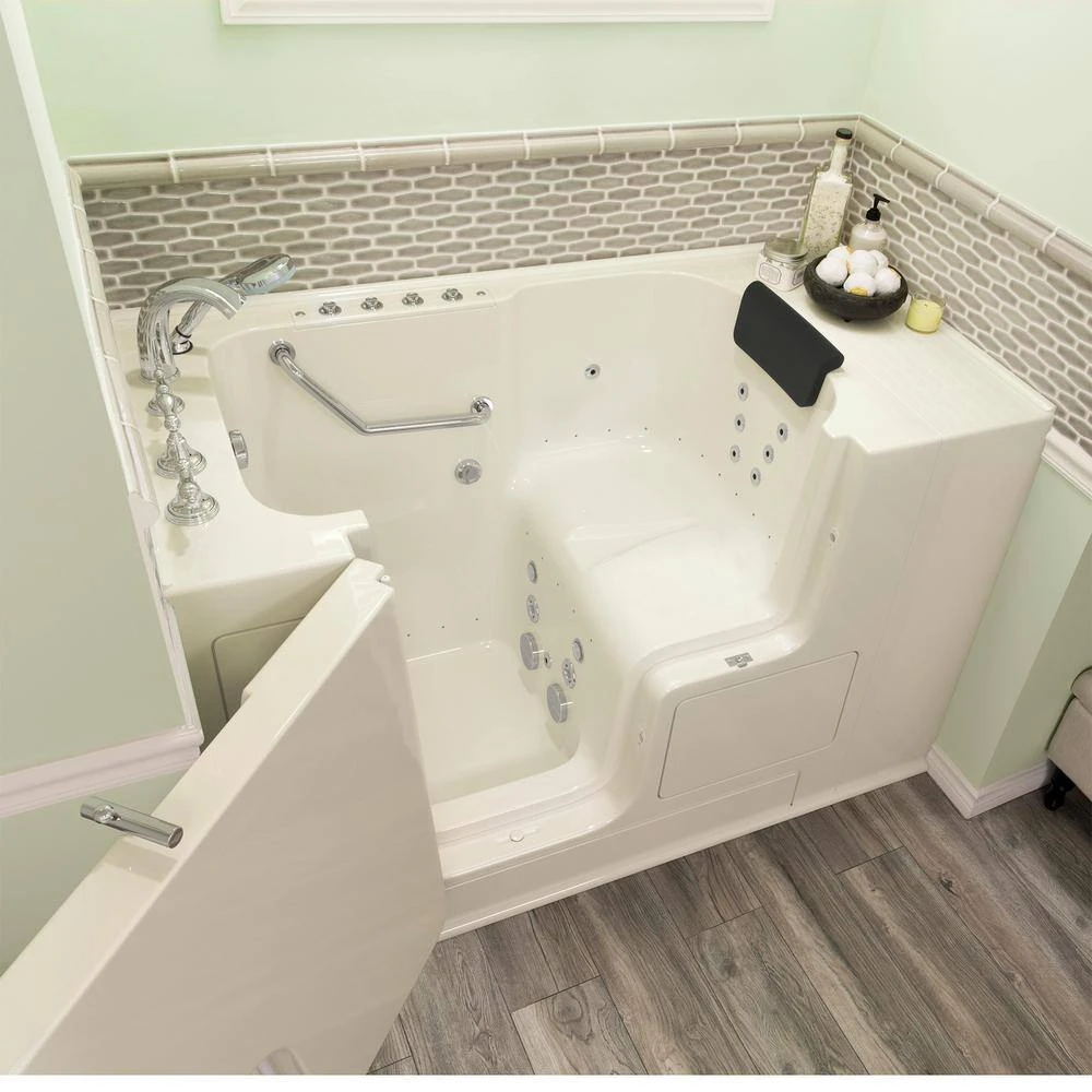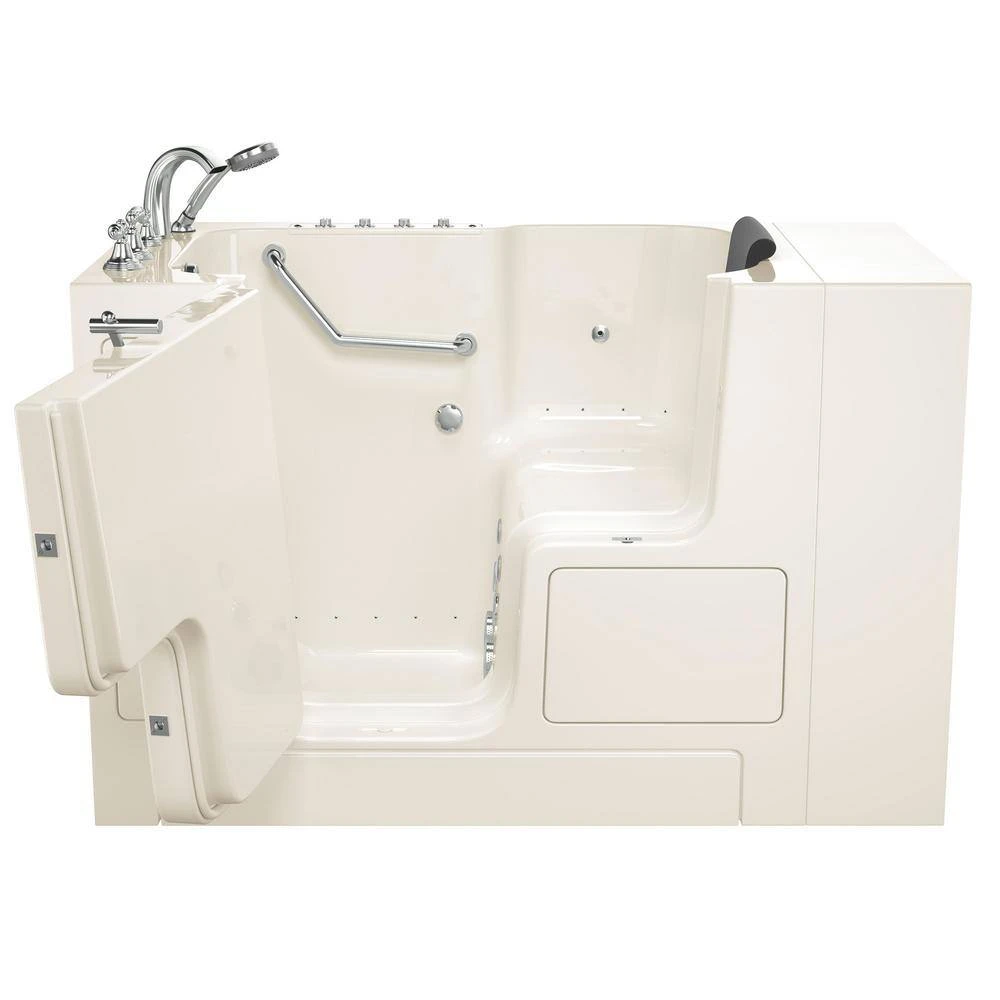 Gelcoat premium series 32 in. x 52 in. outward opening door walk-in bathtub with air spa system fits in smaller spaces. It uses less water – the included tub extender kit makes it easy to retrofit in a standard-size bath space fully equipped. The premium series offers all the latest in safety and comfort features with the most advanced therapeutic option.
