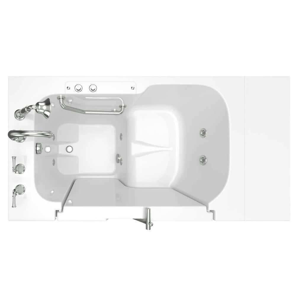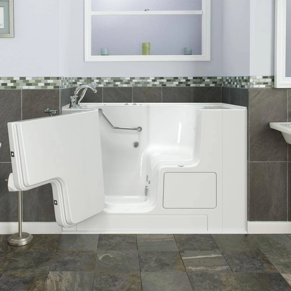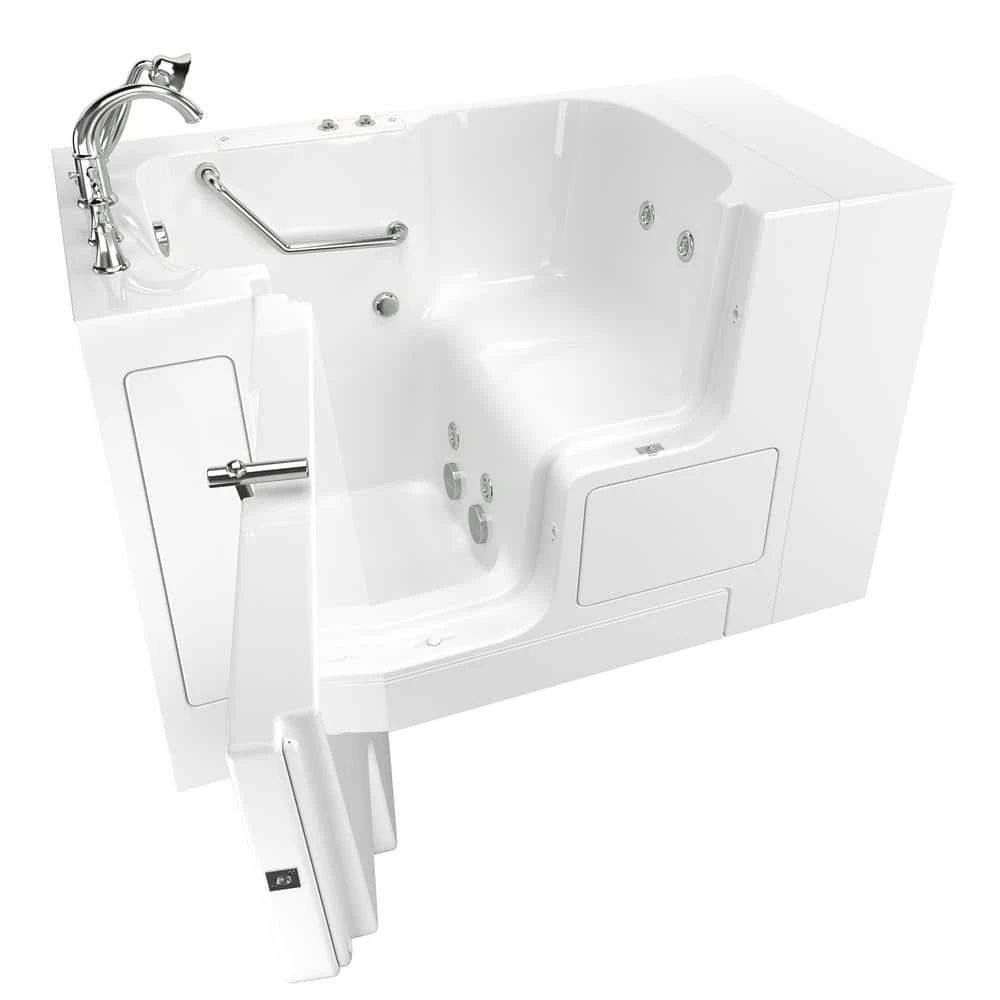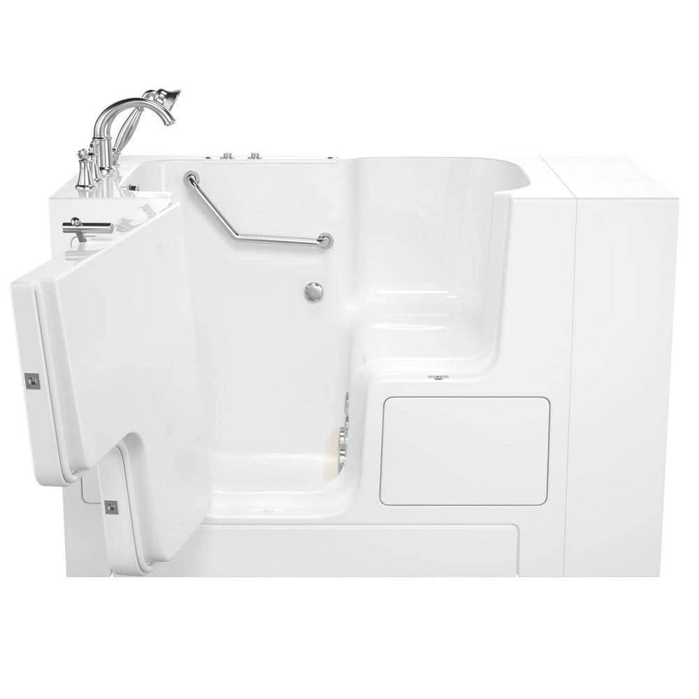 The American standard 32 in. x 52 in. Gelcoat walk-in bath provides a similar bathing experience to larger models but fits in smaller spaces and uses less water. The included tub extender allows this tub to retrofit in the same space as a standard bathtub. The full sized, outward opening, V-shaped door with a low door threshold allows ease of entry and exit. Fully equipped, the 709-value series offers all the latest in safety and comfort features with the most advanced therapeutic options and backed by a lifetime warranty on the door seal, a 10-year warranty on the tub shell and a 5-year warranty on all other components.