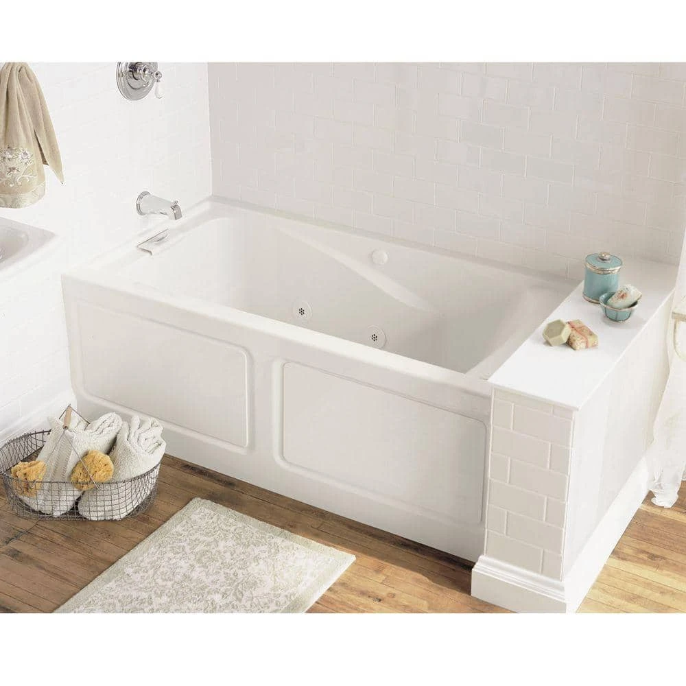The American Standard Lifetime 5 ft. Whirlpool Tub in White provides dual molded armrests to help you renew aching muscles or soothe away the day’s cares. The tub features fiberglass-reinforced acrylic construction and uses a 1.4 HP pump to power the 8 water jets for a therapeutic massage experience.