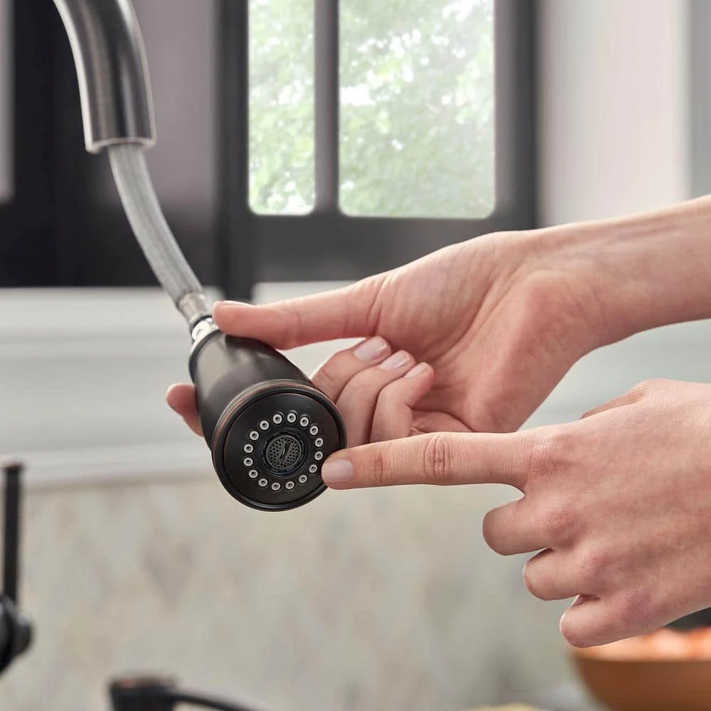 - Re-Trax spray head retraction system ensures smooth pull-out, operation and retraction of spray head
