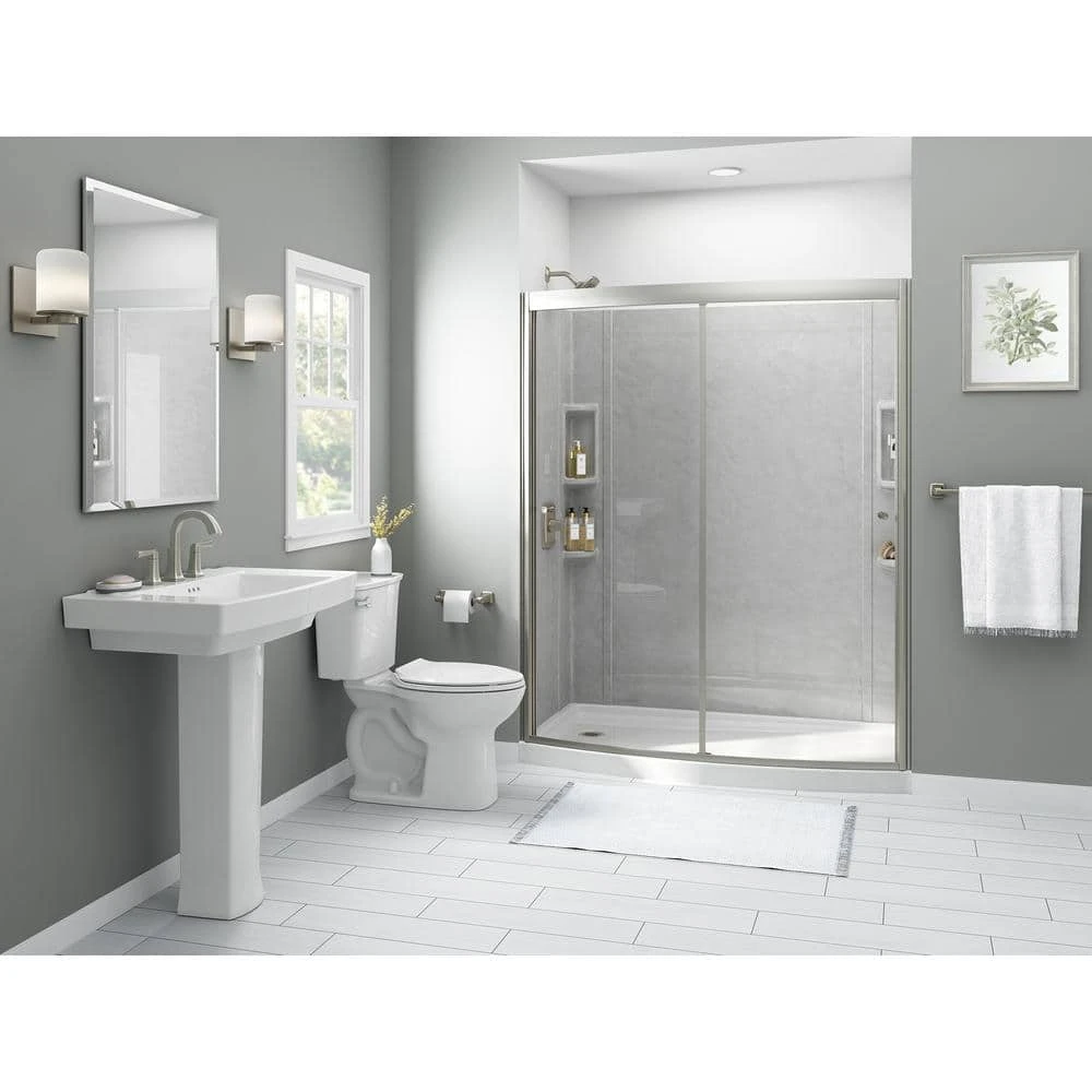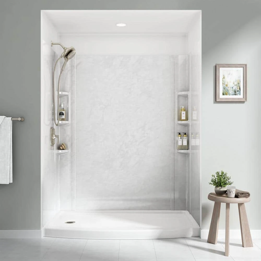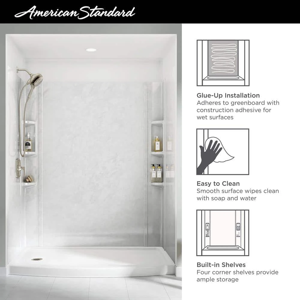Give your bathroom a fresh update with the Passage Alcove Shower Wall system from American Standard. Decorative wall panels in today’s most popular patterns are the perfect alternative to tile and grout. Easy to install, these durable, pre-cut panels adhere securely to waterproof wall-board for lasting beauty and wipe clean with ease.