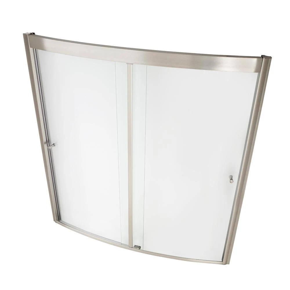 The Ovation curved shower door is design matched to fit perfectly along the contour of the Ovation tub deck. The shower door is constructed of 1/4 in. thick clear, safety tempered glass and a Satin Nickel finish frame. The door conveniently slides open on both the right and left sides. Recommended for use with Ovation tub 2647112 or 2647212 and Ovation tub walls 3060BW1.
