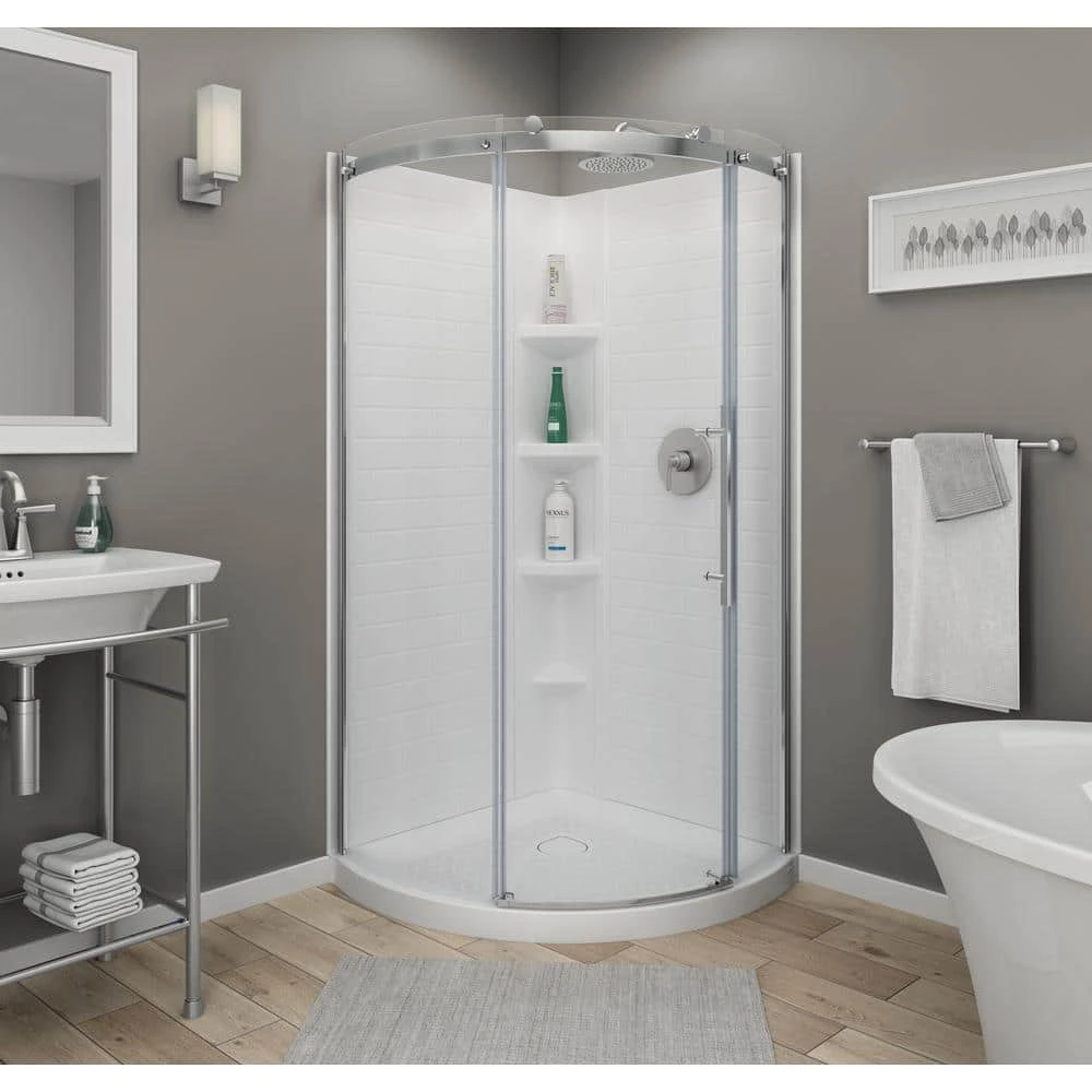 American Standard Ovation Curve 32 7/8 In. – 36 In. W X 72 In. H Sliding Frameless Curved Shower Door In Silver Shine