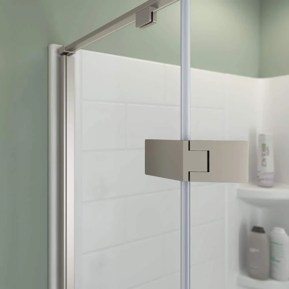 The Ovation Curve collection – offers an easy and affordable way to transform your bathroom with a simple update or full makeover. Designed to make bathing more comfortable by adding more elbow room, the collection includes a curved bathtub, curved shower bases, curved doors, and a large subway tile patterned wall system, each sold separately. Whether your bathroom is large or small, choose the pieces you need to create a space you’ll love. The Ovation Curve Neo-Angle Shower Door from American Standard is designed exclusively for use with the Ovation Curve neo-angle shower base. Quality, frameless design is a contemporary update that makes optimal use of a bathroom corner.