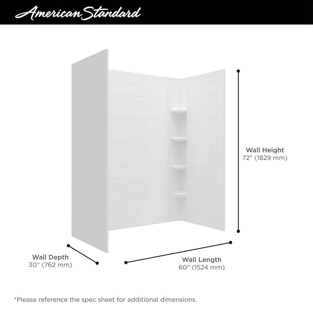 - Tile-patterned walls: 5-piece wall system with built-in shelves features easy, glue-up installation and sized for easy handling