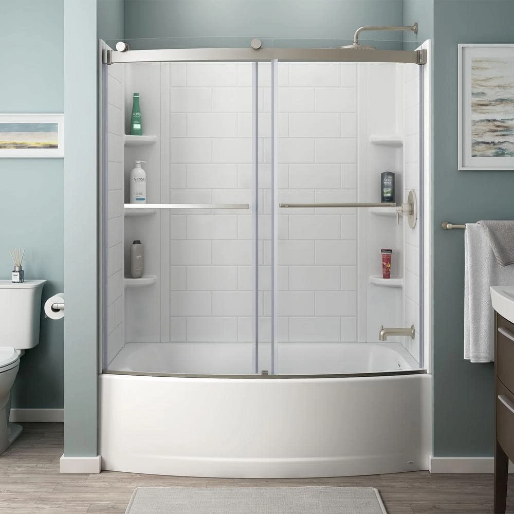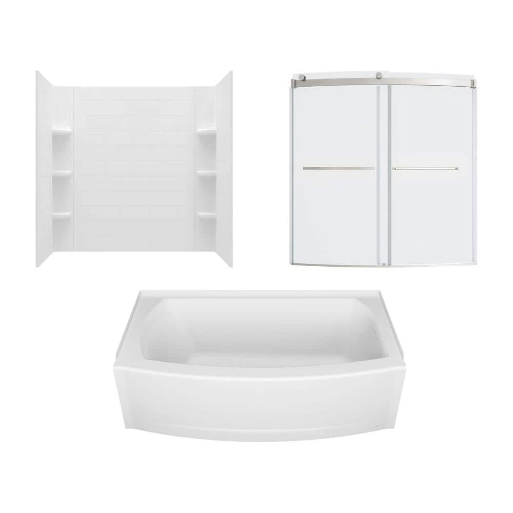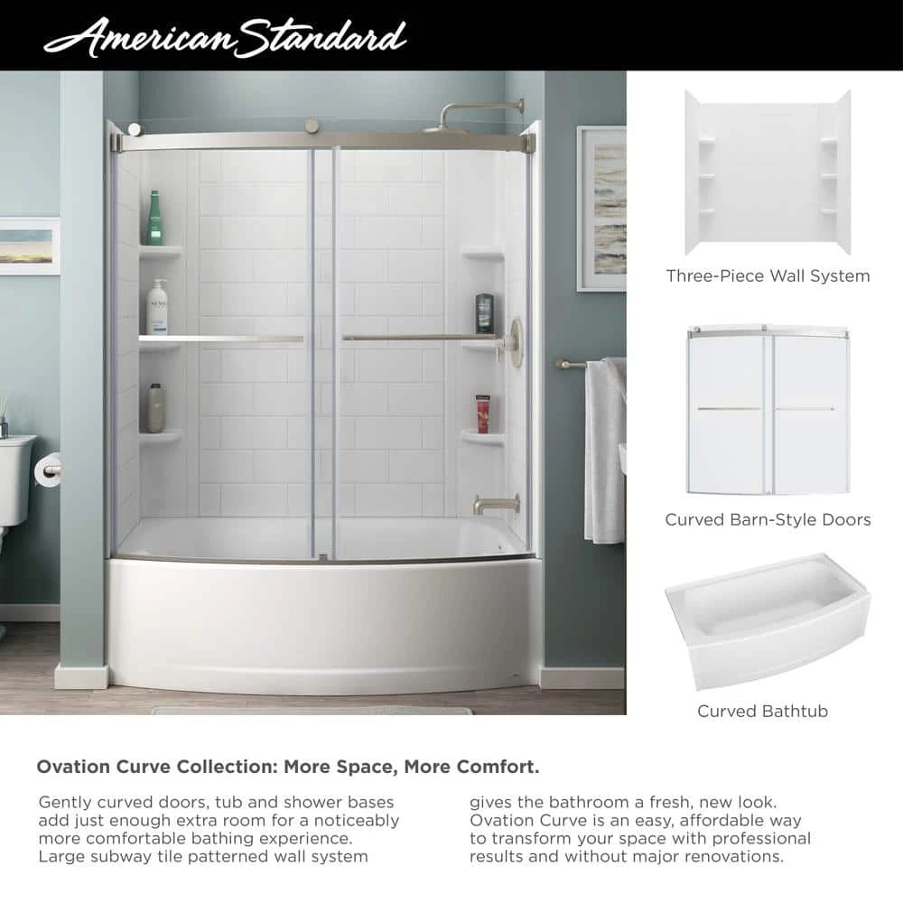 The Ovation Curve Kit from American Standard is an easy and affordable way to give your bathroom a fresh new look. Designed to make bathing more comfortable by adding more elbow room, this Ovation Curve Kit includes a curved bathtub, curved barn-style doors, and a 3-piece wall system in a large subway tile pattern. Installation is easy and each piece features a 10-year warranty, your assurance of quality and lasting beauty.