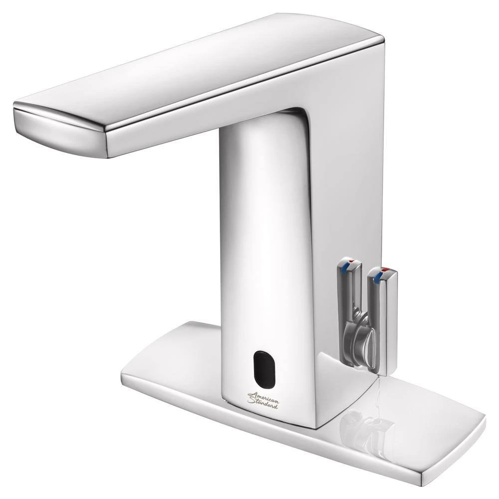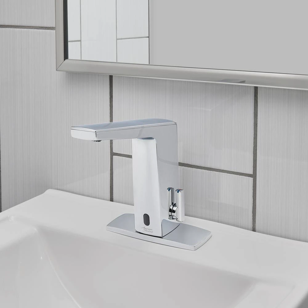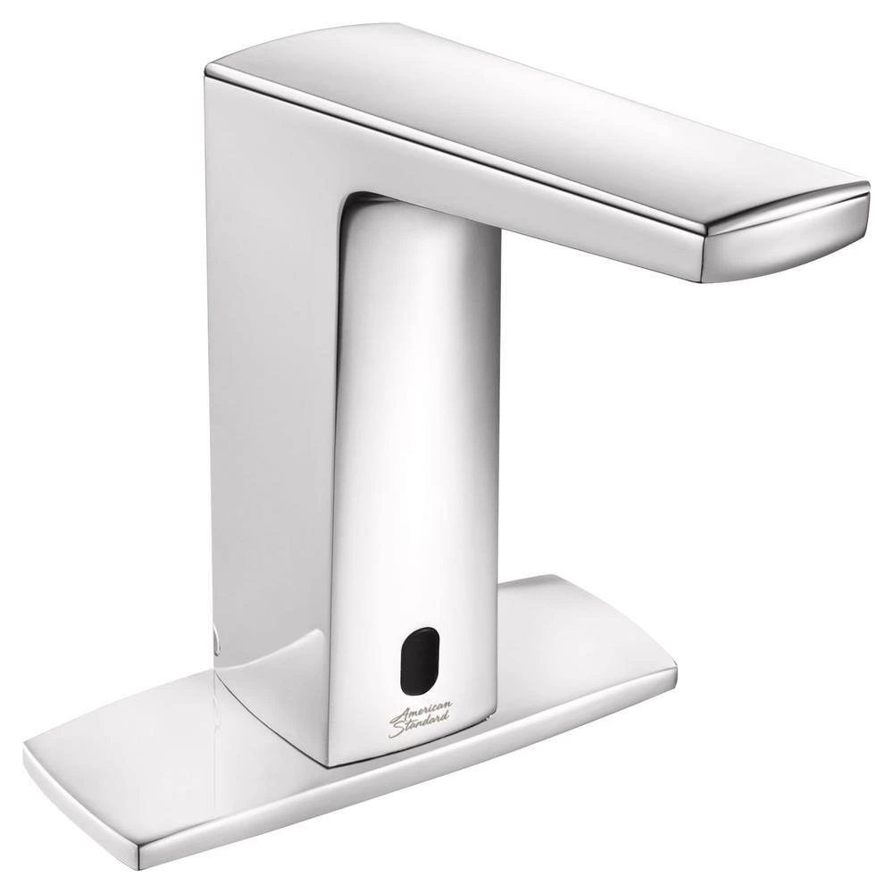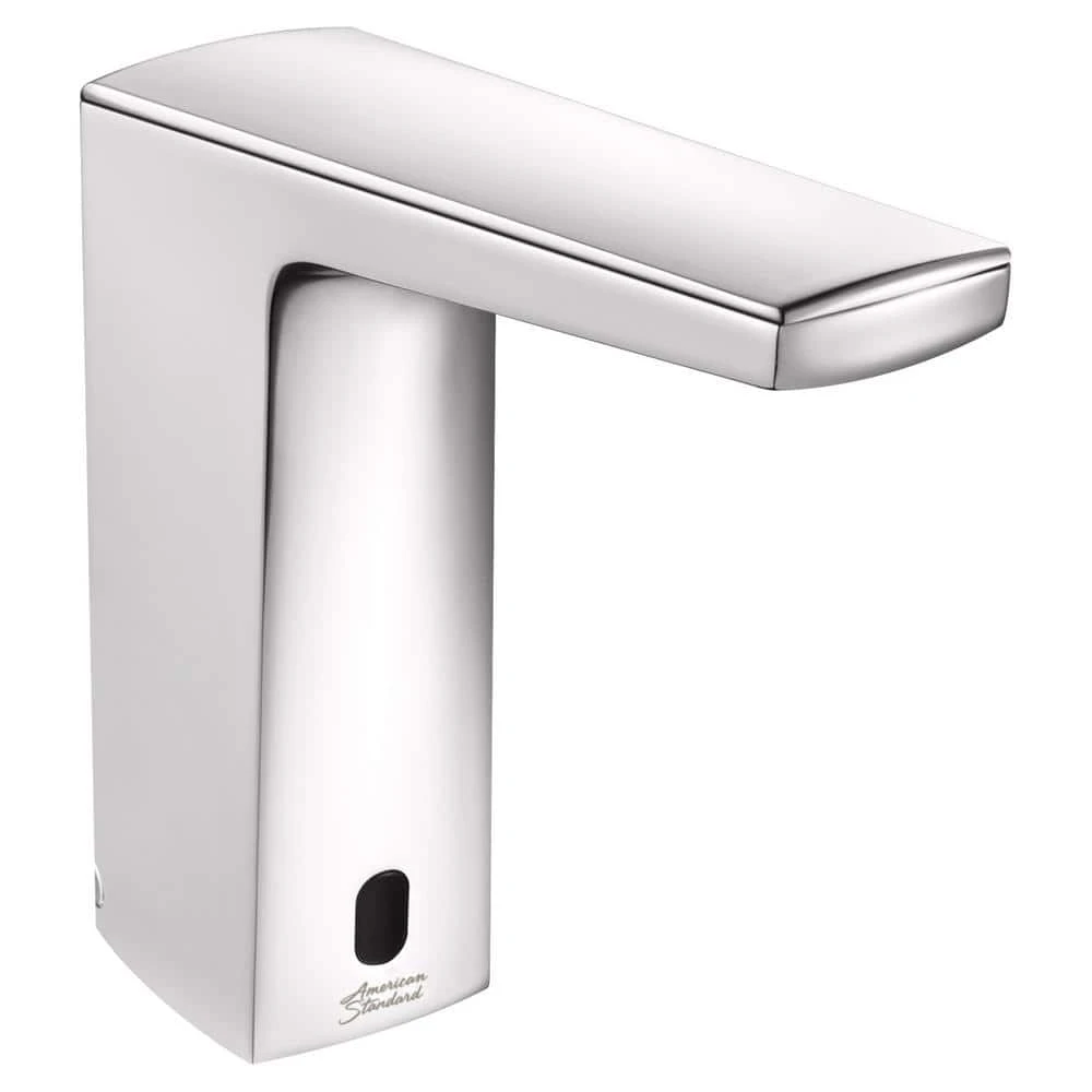 Sleek and streamlined, the Paradigm Selectronic Integrated Faucet from American Standard takes a cue from modern design. It features the patented SmarTherm Safety-Shut Off which is ASSE 1070 certified and automatically protects the user from scalding. The simple integrated design, with all electronics in the spout, is engineered for easy installation and maintenance to save time and money. It eliminates the control box and provides for a clean, clutter-free under-deck space. Available in Chrome and Brushed Nickel.