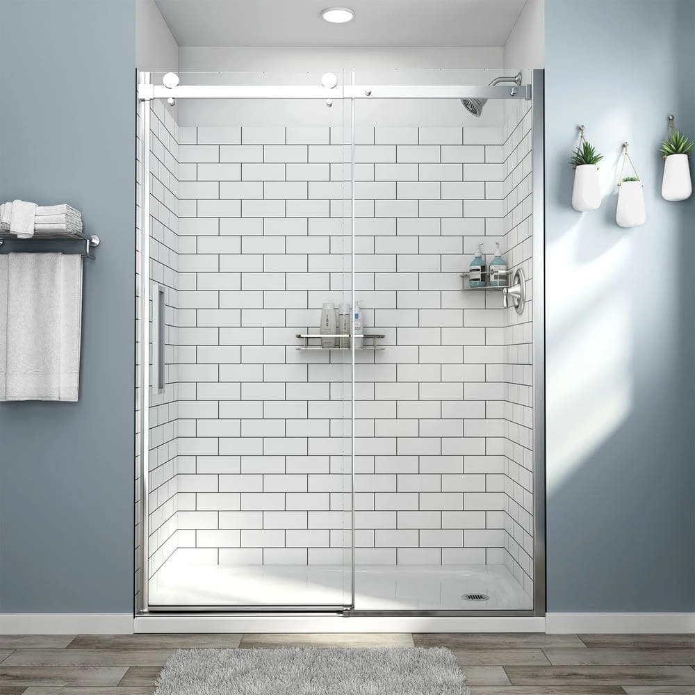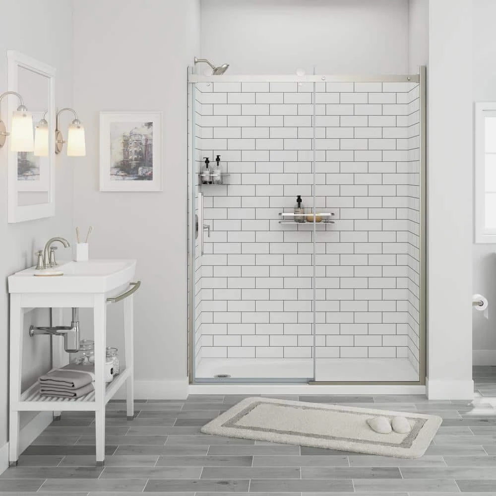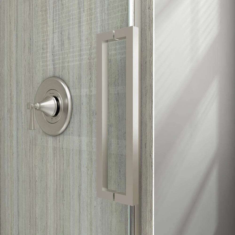 Update your bathroom with the Passage Semi-Frameless Barn-style Shower Doors from American Standard. This sliding, quality-crafted door features top rollers that operate with a smooth, gliding motion. The Passage Shower Door is made with easy-clean 3/8 in. thick, tempered glass that sheets water to help prevent streaking. Create a complete makeover with a coordinating Passage shower base, shower walls, and shower shelves.