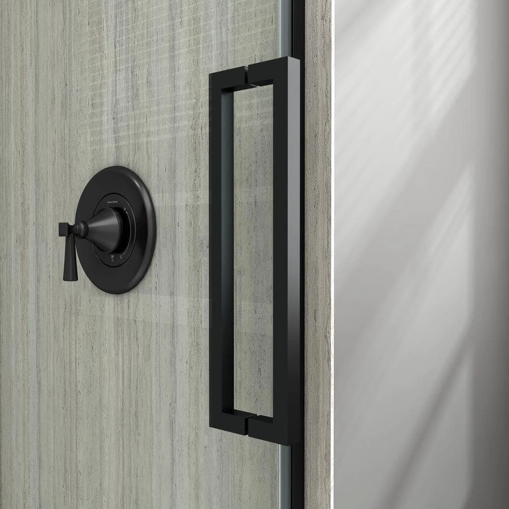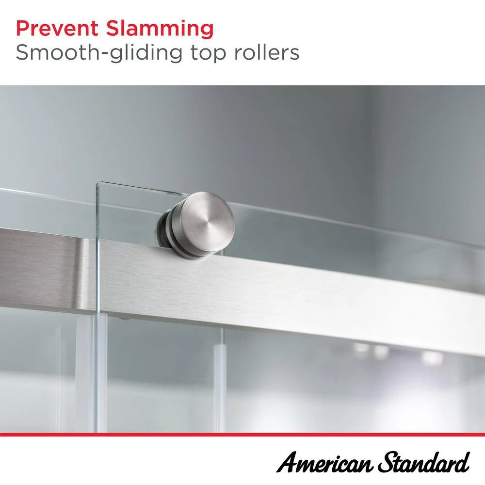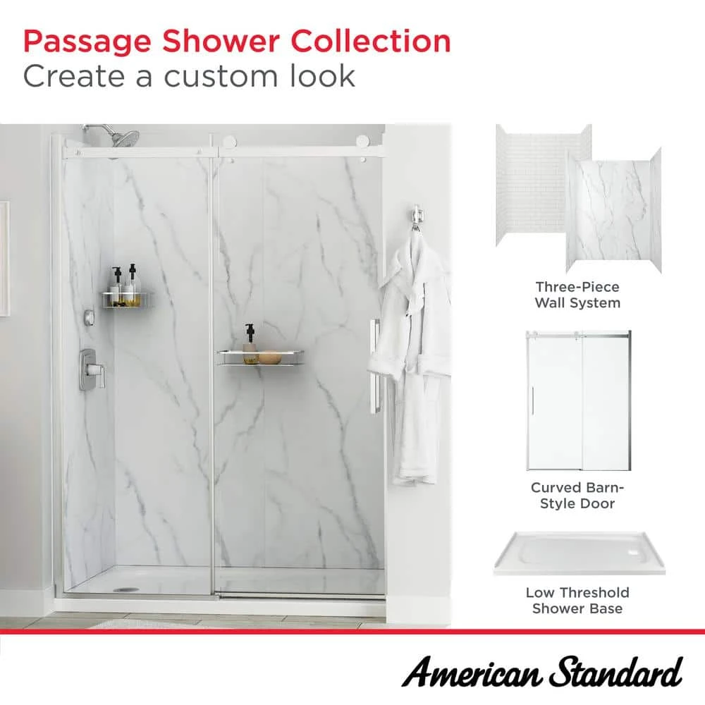 Update your bathroom with the Passage Semi-Frameless Barn-style Shower Doors from American Standard. This sliding, quality-crafted door features top rollers that operate with a smooth, gliding motion. The Passage Shower Door is made with easy-clean 3/8 in. thick, tempered glass that sheets water to help prevent streaking. Create a complete makeover with a coordinating Passage shower base, shower walls, and shower shelves.