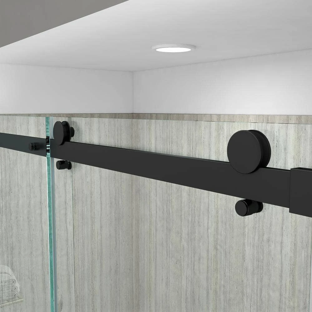 - Contemporary makeover – semi-frameless, barn-style door with smooth, sliding motion