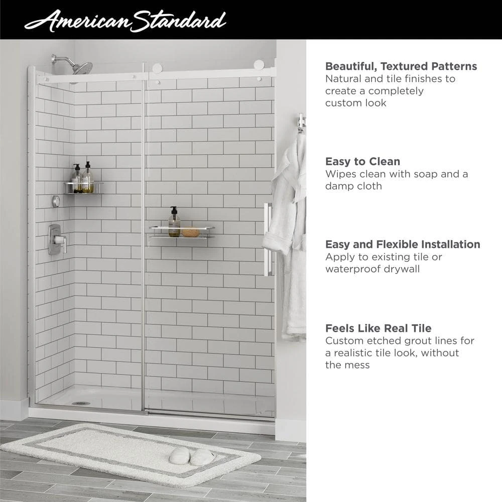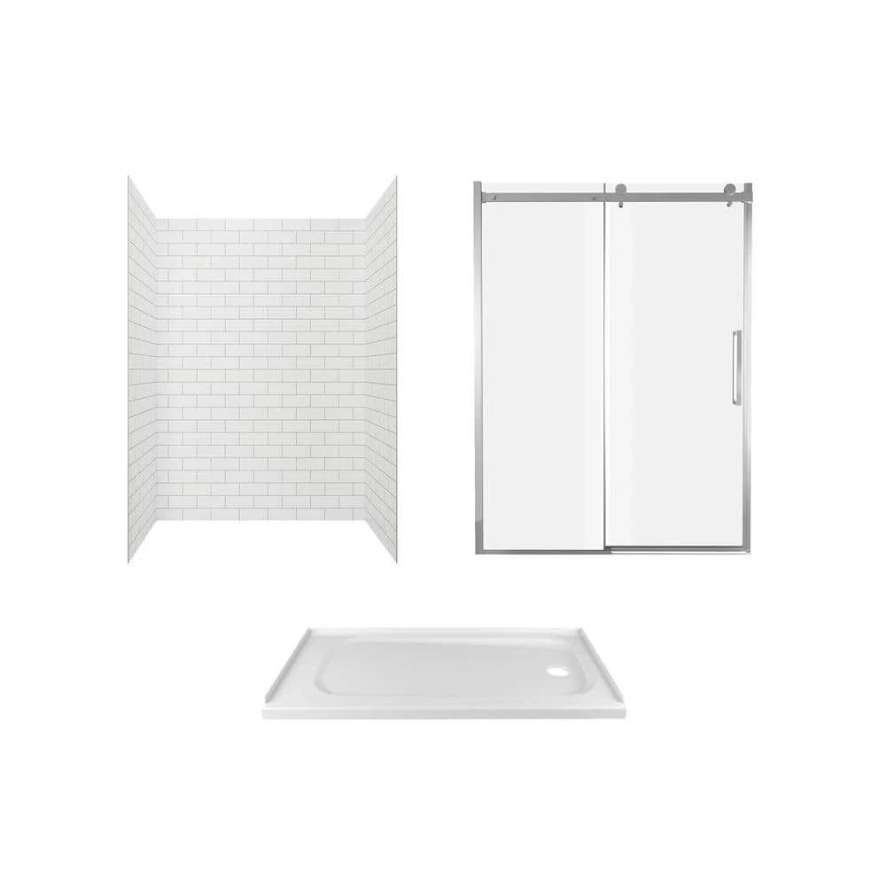 Take your bathroom from basic to beautiful with the Passage Custom Shower Kit, complete with Subway Tile patterned walls, shower base, and frameless shower door. Easy to install, these durable, pre-cut panels adhere securely to wall-board and feature custom etched grout lines for a realistic tile look without the mess of grout. The Passage single, low-threshold shower base is durable and easy to clean, and the perfect size to convert an existing 60 in. x 32 in. bathtub into a shower. To complete your shower base and walls, the passage frameless shower door features Easy-to-Clean glass to help prevent streaking, and smooth-operating barn door rollers for a truly modern look.